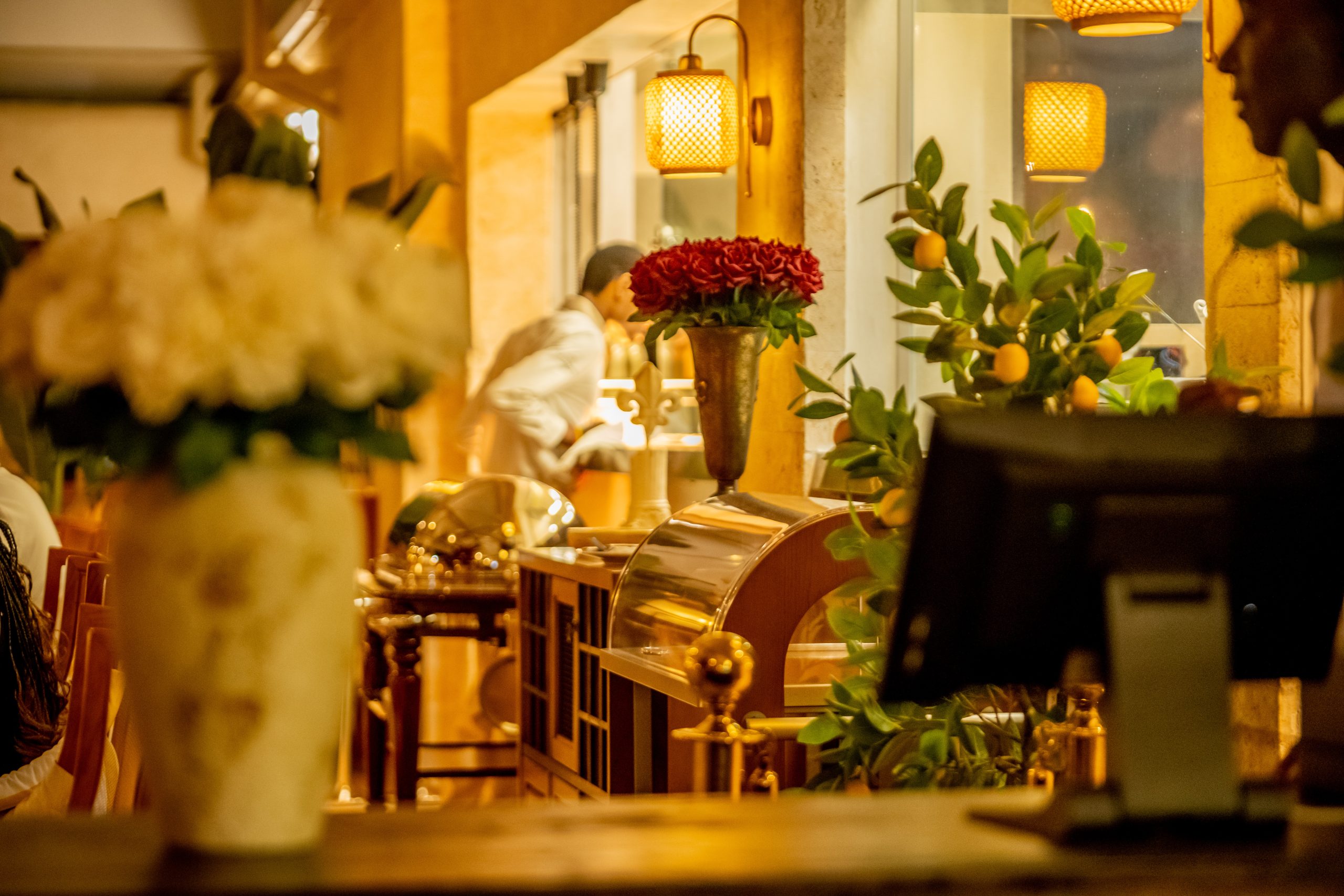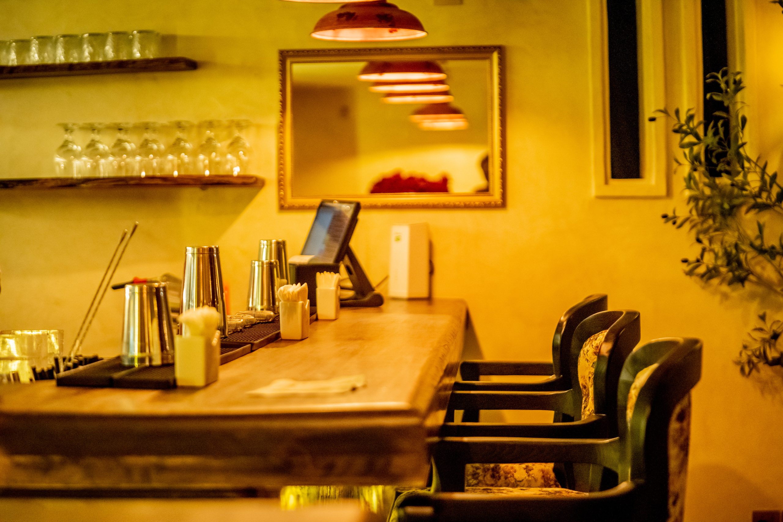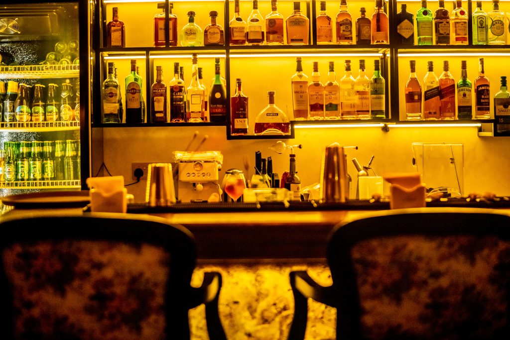 The bar and café, offering signature cocktails, premium spirits, and refined coffee creations in a convivial atmosphere.